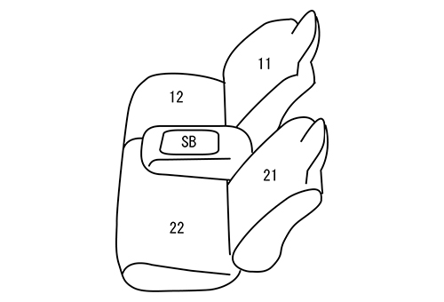 | 適合形状 | 1列目:座面形状が4:6分割、ヘッドレスト一体型、センターシート有り 2列目:背もたれ座面一体型、ヘッドレスト無し、シートベルト無し |