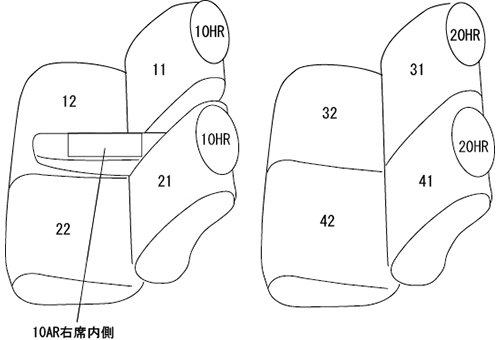 | 適合形状 | ※運転席シートリフター有り ※2列目背もたれ背面にスライドレバー有り ※コンビニフック使用不可 シートヒーター対応 ※この品番はマイナーチェンジ前後の購入間違いが多い為、 |
