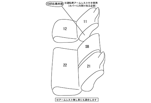 | 適合形状 | ヘッドレスト一体型シート 助手席センター席分割型シート 助手席背面バックボード無し車 |