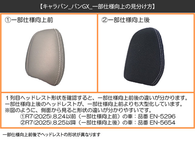 | 適合不可 | バンDX / GLパック / ライダー / バンVX ※2列目背もたれの中央部が、大きく窪んでいるシートは適合不可 |